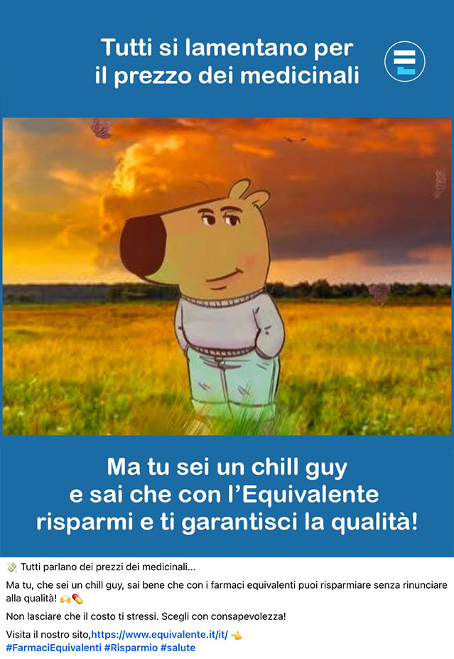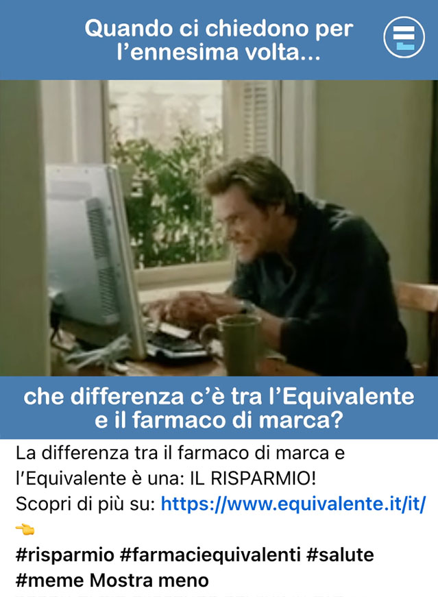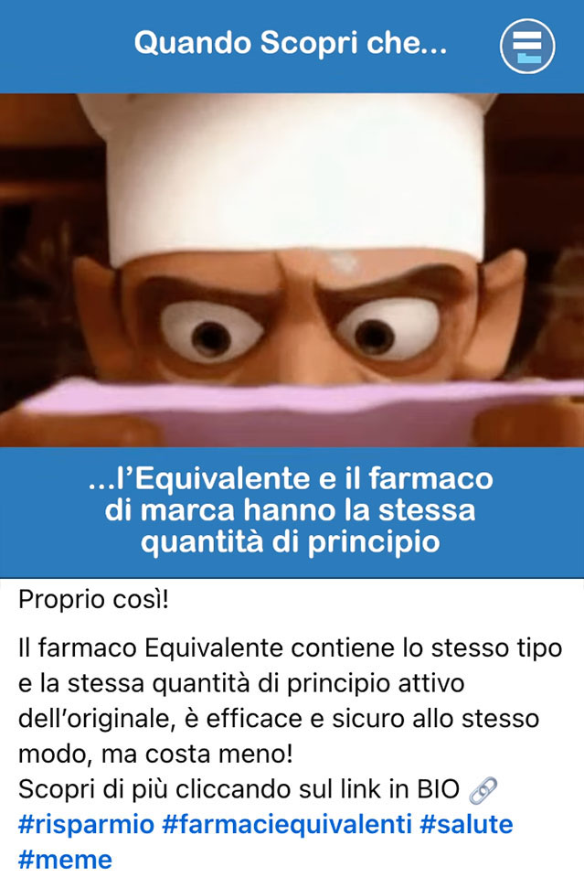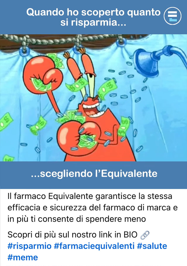 Segui i Meme Equivalenti e scopri i vantaggi dei farmaci equivalenti attraverso lo strumento più social che c’è.