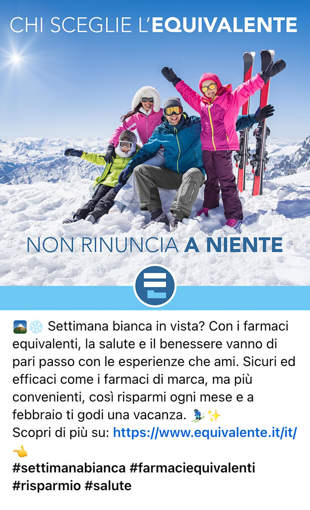 “Chi sceglie l’equivalente non rinuncia a niente”, scopri la nostra campagna sul risparmio e su una salute alla portata di tutti.